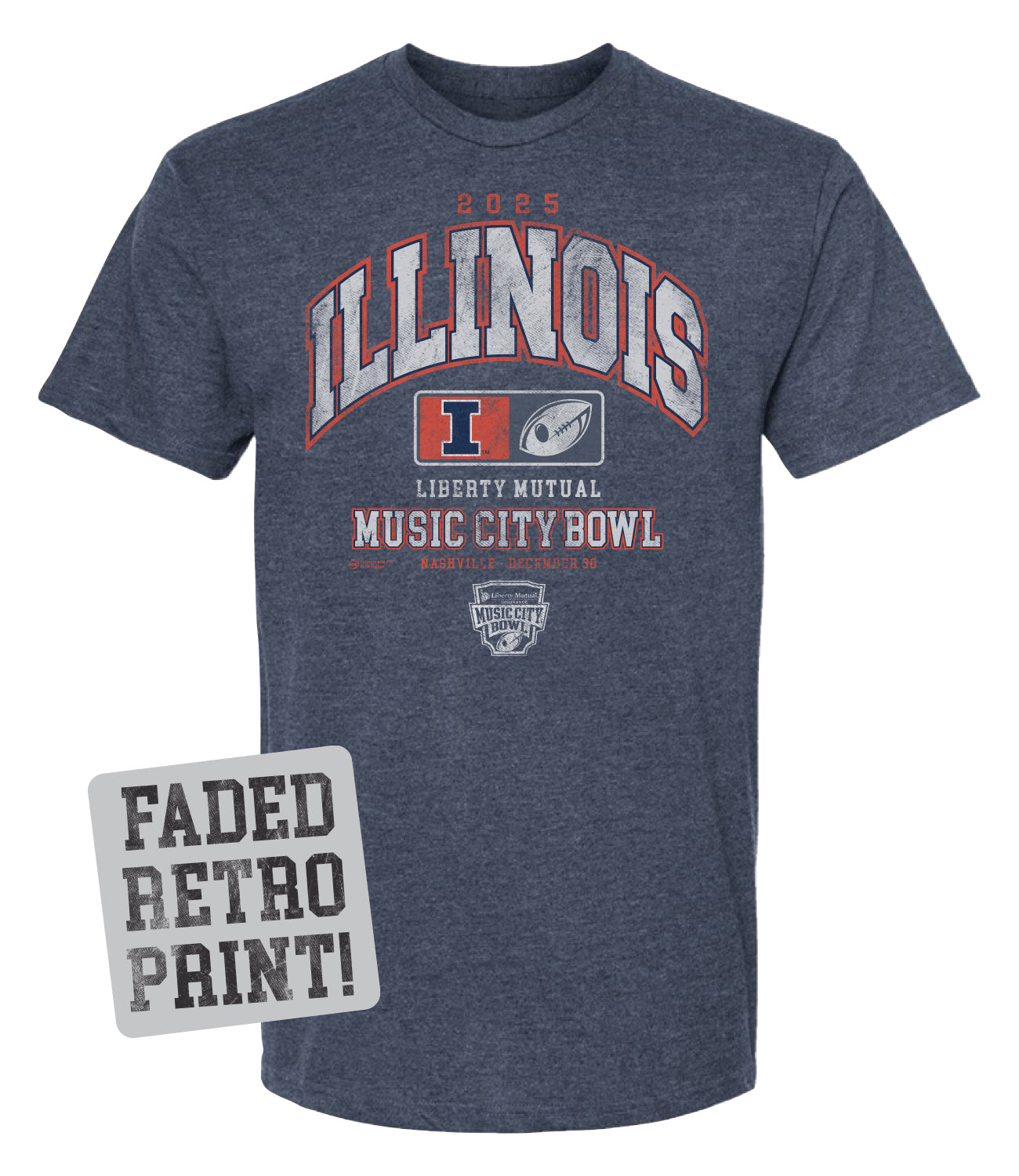 2025 Liberty Mutual Music City Bowl Illinois SST. Faded Retro Look and Feel.